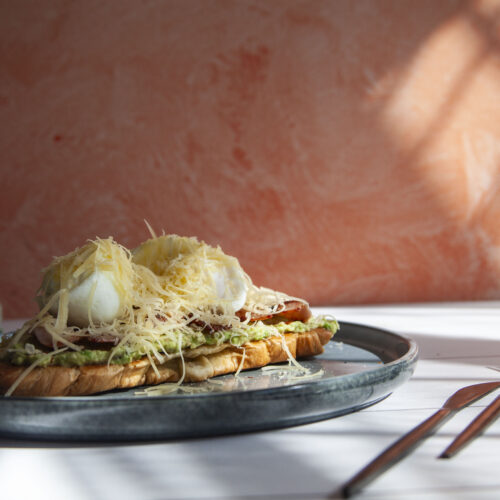 I recently saw this Avocado "croast" on Instagram (can't remember the page name) and decided to give it a try. The dish is called a "croast," which is essentially a pressed and toasted croissant topped with a delightful combination of guacamole, bacon (my additions), poached egg, and parmesan. Here's how you can recreate this delicious treat at home.