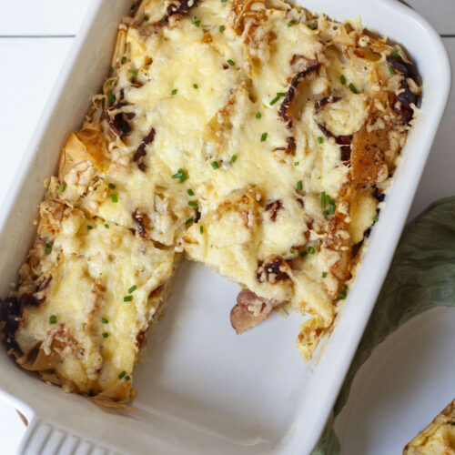 Crispy, cheesy, and packed with flavour – this Breakfast Crinkle Cake is the ultimate morning indulgence.Made with flaky phyllo pastry, smoky bacon, and a savoury custard, it’s a quick and easy dish perfect for breakfast or brunch. Serve it warm with chutney or chakalaka for a proudly South African twist.