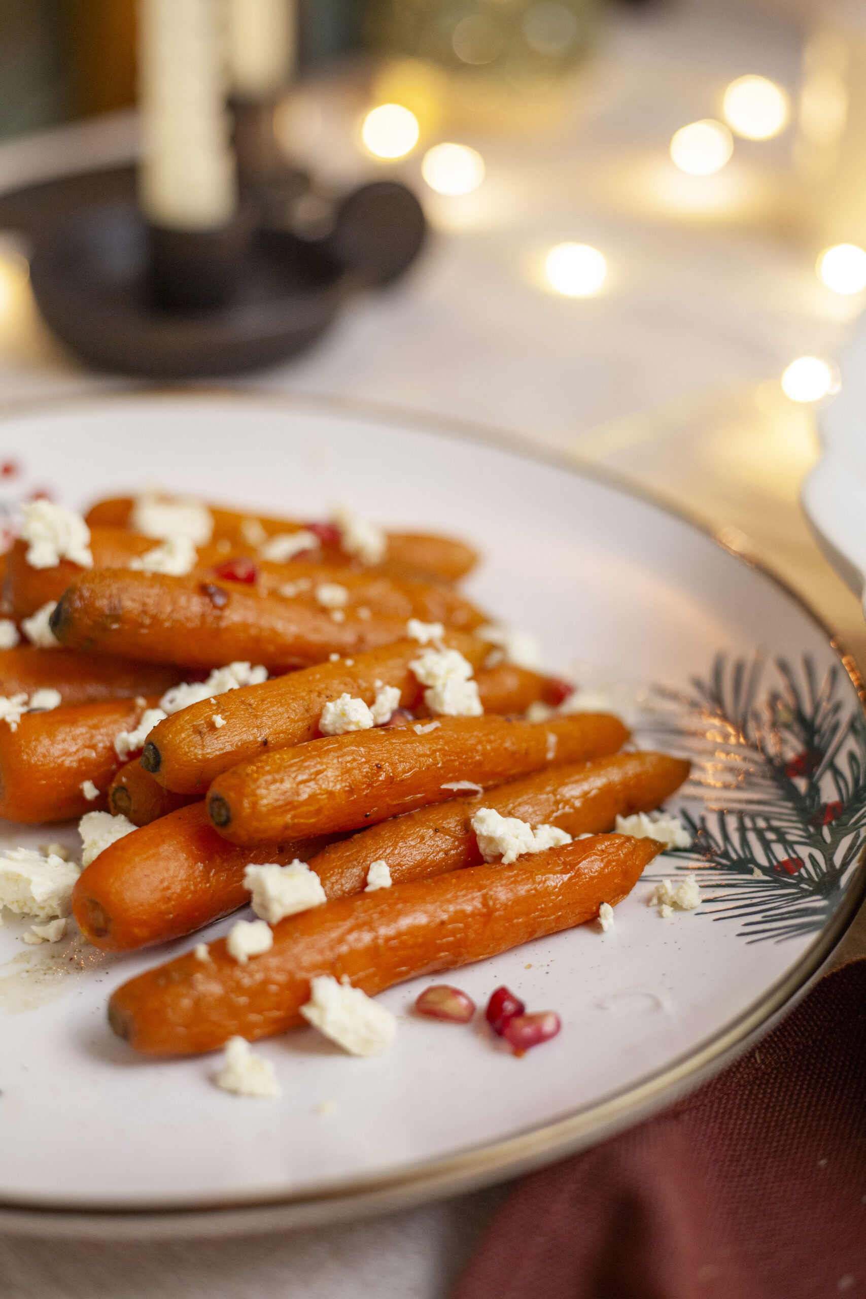 Chai Honey Roasted Carrots with Feta and Pomegranate Seeds