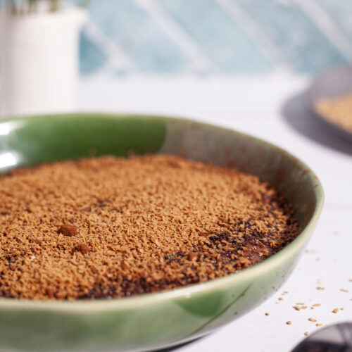• Reduce the heat and simmer gently, while whisking continually, for about 10 minutes. Turn off the heat, allow to rest for 5 minutes before serving with a generous sprinkling of cocoa sugar and chocolate