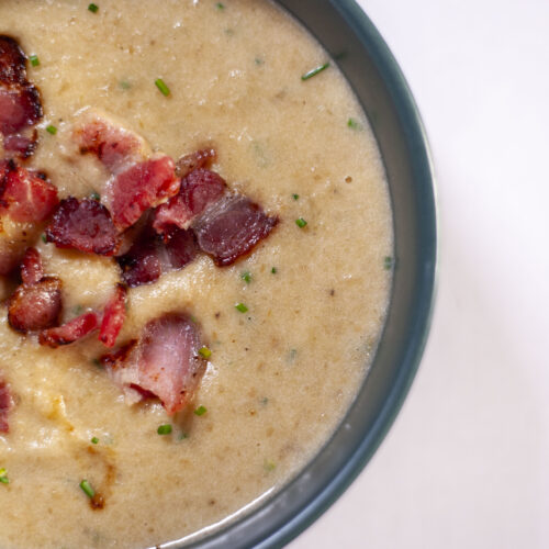 Inspired by a Nordic classic, this creamy potato and leek soup is rustic, rich, and topped with crispy bacon, whipped cream, and chives. It’s the perfect bowl for cold winter days — simple, comforting, and packed with texture and flavour.