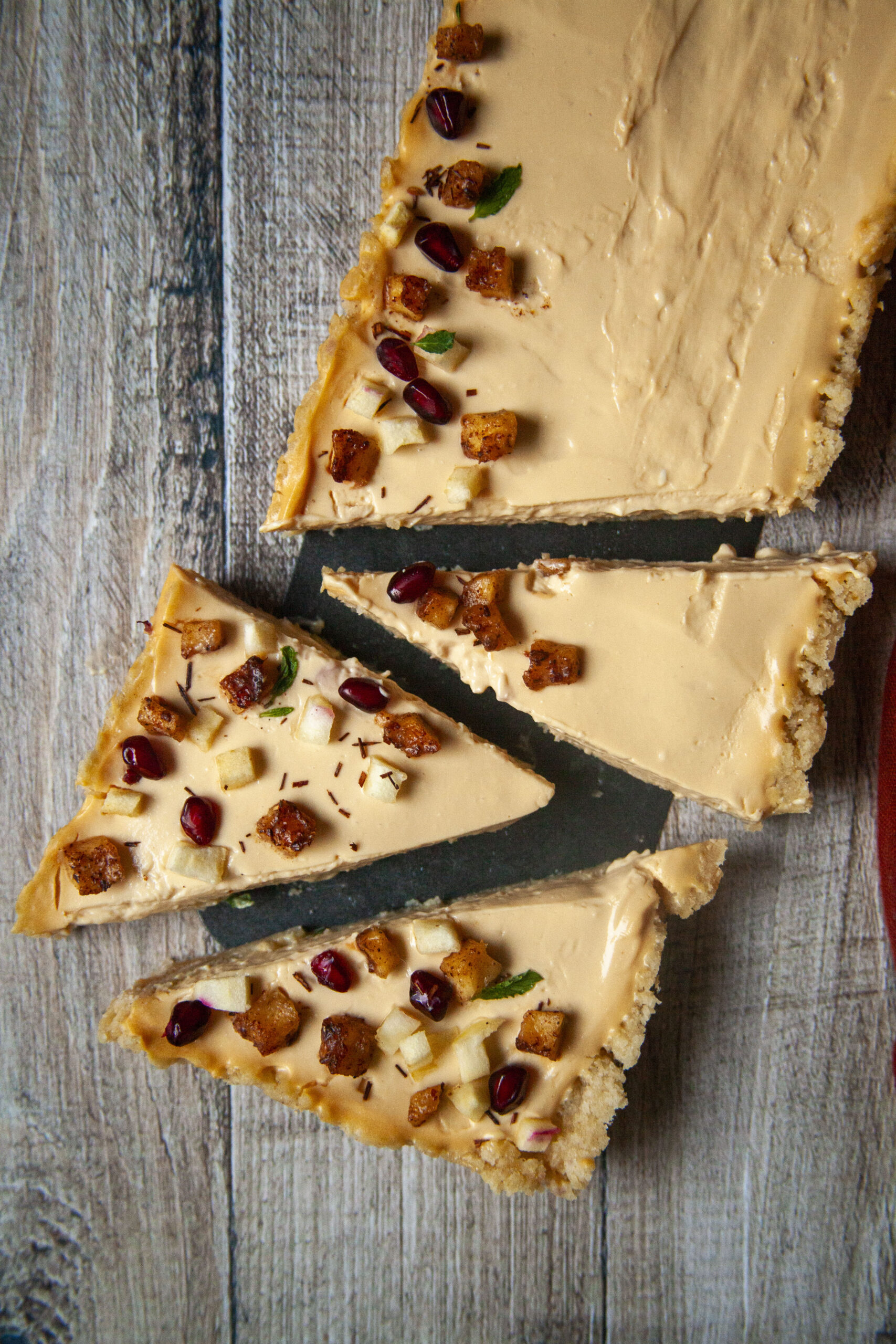 This dessert is a delightful fusion of two distinct yet complementary treats: malva pudding and cheesecake.Malva pudding, a beloved South African dessert, forms the base with its moist and caramelized texture, infused with flavors of apricot jam and a hint of lime juice. Baked until golden and crumbled, it provides a sweet and comforting foundation.Topping this base is a creamy cheesecake layer, enriched with cream cheese, melted white chocolate, and a touch of custard. The cheesecake is set to perfection after a few hours of chilling, adding a luscious and decadent contrast to the malva pudding’s warmth.Together, these layers create a dessert that blends the comforting nostalgia of malva pudding with the creamy indulgence of cheesecake, making it a perfect finale for any gathering or special occasion.