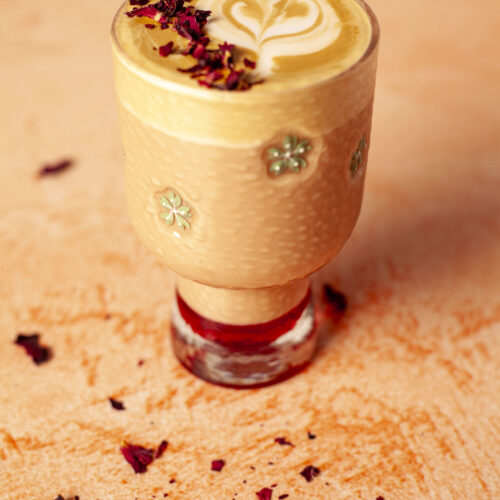 - Heat and froth your milk, adding a tiny bit of rose syrup or beetroot powder for that gentle blush pink hue. *See notes